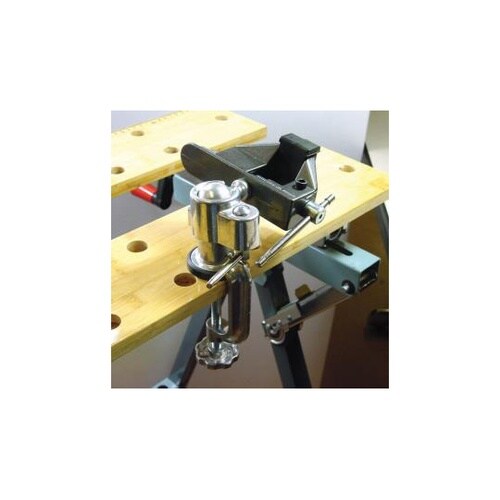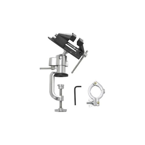 ホビー、クラフトなどの軽作業に。360°回転&45°まで傾斜可能で、バイスの角度自由自在です。アタッチメントの交換で電気ドリルスタンドになります。加工物をキズから守るゴムパッド付です。 |