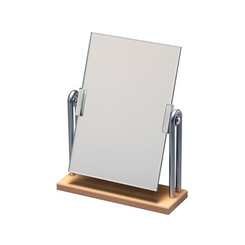 メイクに便利な卓上ミラー。幅広面取りをした豪華な5ミリ厚ミラーを使用したスタンドミラー。台座はインテリアにマッチするMDF木材を使用、支柱はシルバー塗装を施しスタイリッシュ。 |