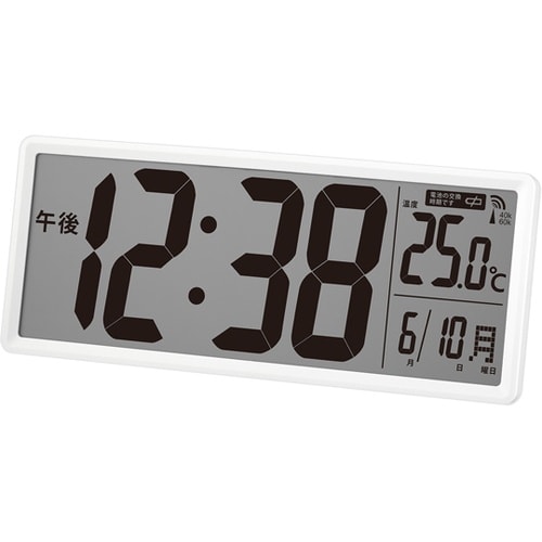 背面にスタンドと掛け穴があり、掛け置き両用で用途に併せた設置が可能。リビングで遠目にも見やすい大型タイプです。時刻を自動修正する電波時計で時刻合わせの必要がありません。 |