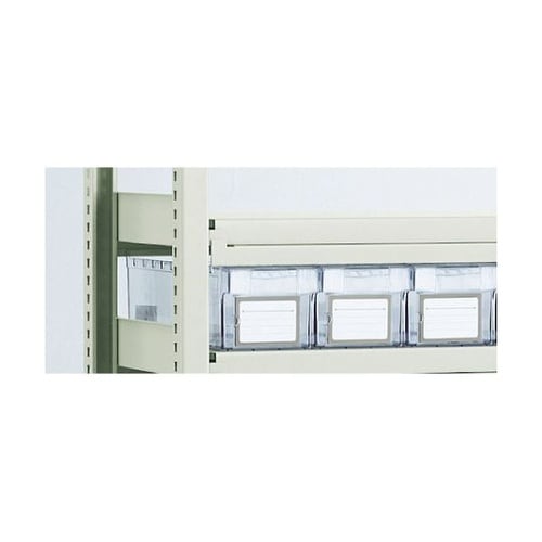 棚板と棚受けの間にストッパーを挟みこむだけで、簡単に取り付けができ、引き出しの落下を防止します。棚板の間口面の両方に設置することで、前後ストッパーになります。 |