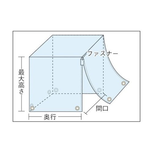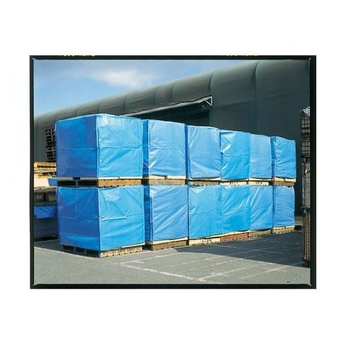 荷積したパレットをジャストサイズでカバーできます。開放面がファスナー付のため脱着が簡単です。焼却処理時、ダイオキシン類の発生が少ないシートです。雨天時の野外移動、出荷業務がスムーズにできます。 |