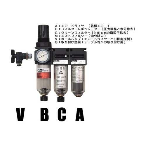 クリーンシステム(エアードライヤー、レギュレーター、フィルター)ボールバルブ付き ABC−45−V