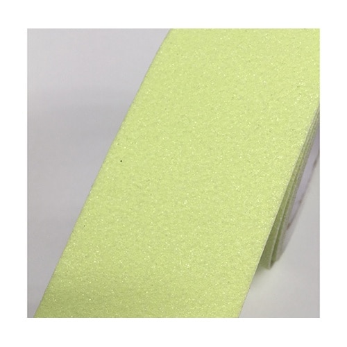 表面に鉱物粒子を吹き付け加工した強力滑り止めテープ。階段、通路などの滑りやすい場所に最適。蓄光タイプで暗所や急な停電時など高い視認性を発揮。 |
