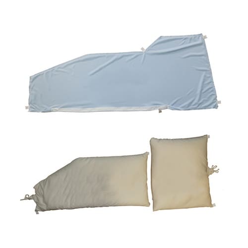 上肢と下肢をクッションに置くだけで、呼吸がしやすく楽な姿勢が作れます。中材のビーズを減らして高さを低くしたり、小袋を入れることにより、体格差に応じて上肢部等の高さを変えることが可能です。 |