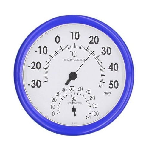 直径300mmの温湿度計です。背面に壁掛け用の穴があります。 |