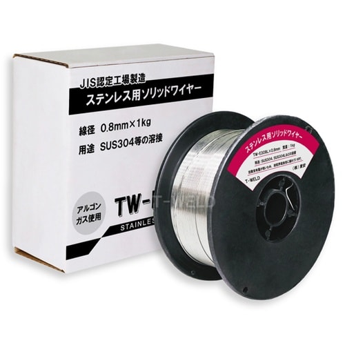 SUS304、SUS304Lの溶接に使用するワイヤになります。溶接ガス:アルゴンガス98%と酸素2%で溶接してください。 |