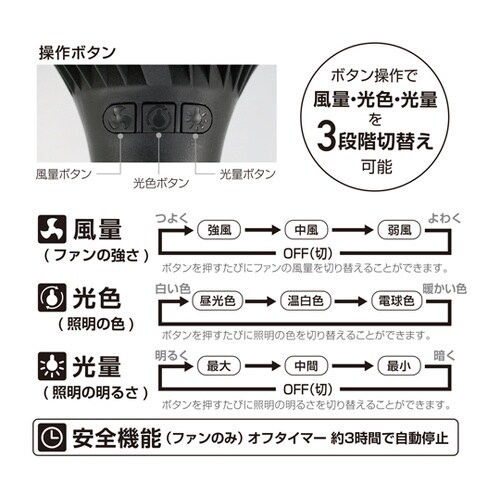 デスクや本棚に挟んで使えるクリップファンにライトが付いて1台2役のファンライトです。物を増やしたくないデスク周りで快適にご使用いただけます。 |