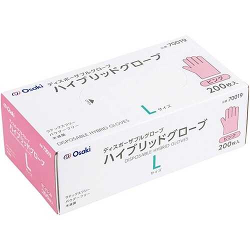 オオサキ ハイブリッドグローブ ピンク L 200枚入 70019