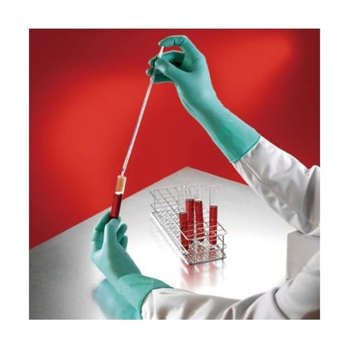 ラテックスが含まれていないので、I型アレルギー予防に適しています。パウダーがないので、皮膚炎の危険性を軽減します。酸、塩基、アルコールに優れた耐性を提供します。 |