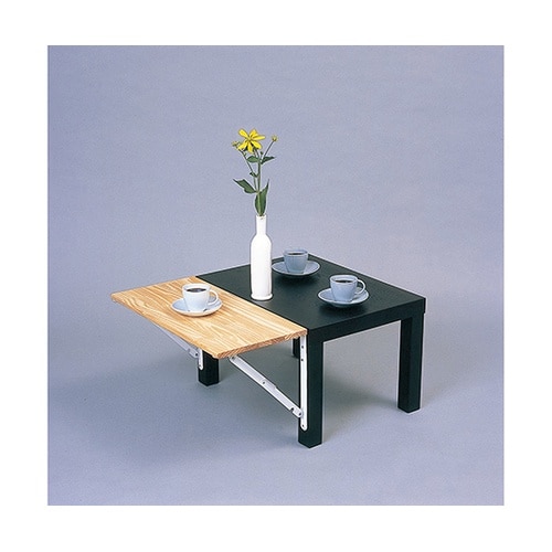 折りたたみが出来る棚受け金具で、不要な時はたためて邪魔になりません。狭いスペースのキッチン回りの棚受け、机を少し大きくするため折りたたみテーブルを作りたい。そんな用途に適した棚受け金具です。 |