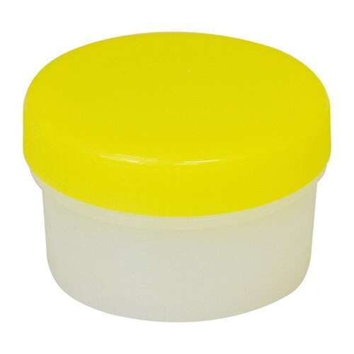 外径:Φ43.5mm | 高さ:27mm | 材質:本体・PE、フタ・PP | 色:本体・白、フタ・黄 | 単位:1箱