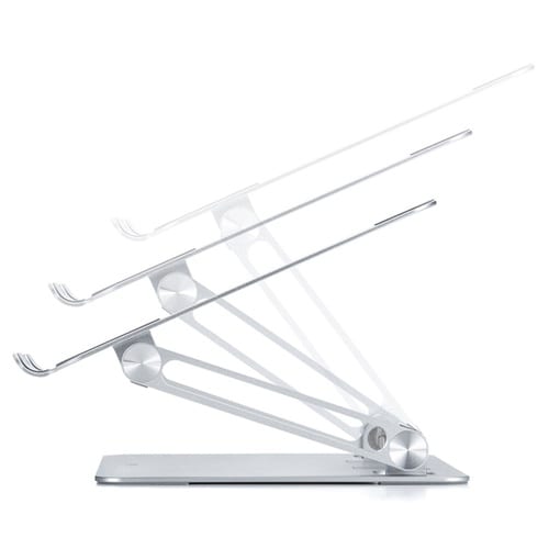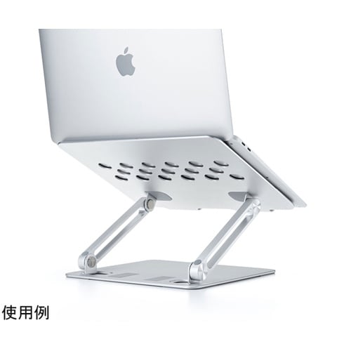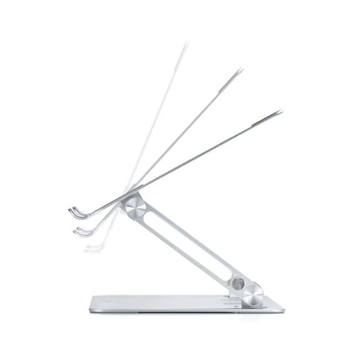 2つのヒンジを搭載し角度と高さの調整ができるアルミ製のノートパソコン用デスクトップスタンドです。 |
