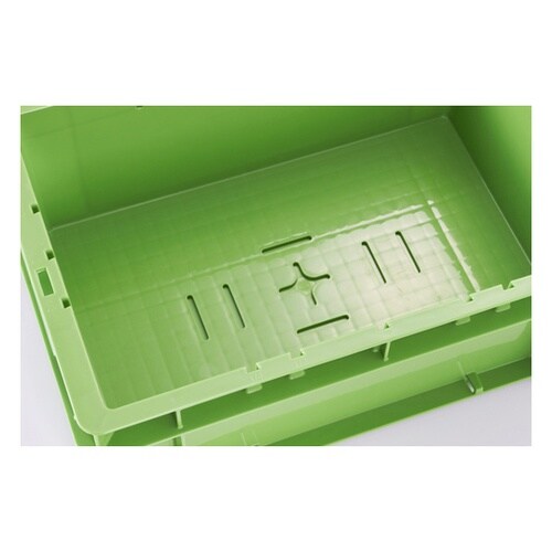 透明タイプは中身が簡単に確認できます。F型タイプで互いに積み重ねが可能です。上部内側に仕切板を受ける溝付きです。別売の仕切板を利用することにより、細かな製品の管理が容易になります。 |