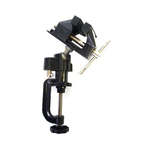 首振り角度が自由で、作業性が大幅に向上。アルミダイキャスト製で軽くて丈夫。バイスはゴムキャップ付で工作物をいためません。C型クランプは作業台や、机に加えさせ作業が可能です。 |