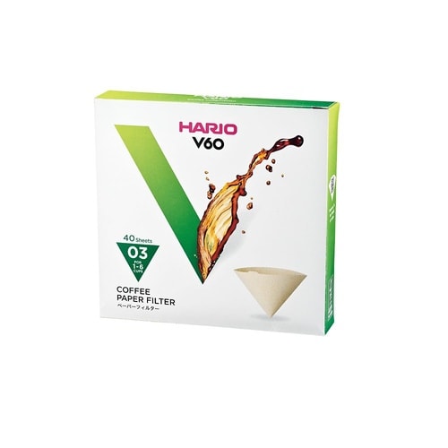 V型円すい形のペーパーフィルターは、珈琲粉の層が深く、珈琲粉に注いだお湯が円すいの頂点に向かって流れるので豆の旨味をしっかりと抽出できます。 |