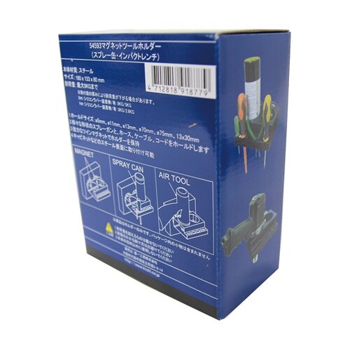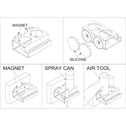 スプレー缶やボトル、インパクトレンチ、ドライバー、プライヤーをホールドします。強力なツインマグネットでホルダーを保持。キャビネットなどのスチール表面に取り付け可能。 |