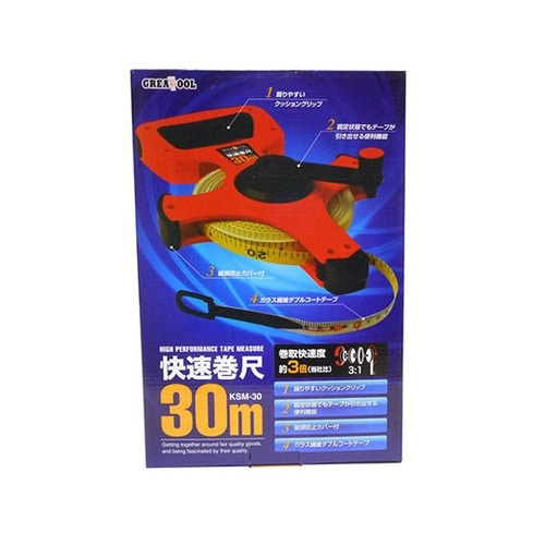 巻取部にギヤ機能を搭載して巻取快速度、約3倍を実現。(メーカー製品比)固定(ロック)状態でもテープが引き出せる便利機能。握りやすいクッショングリップ。ガラス繊維ダブルコートテープを採用。 |