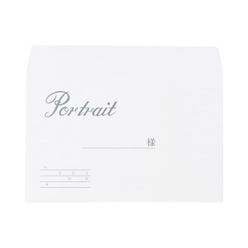 白地にグレーの文字で”Portrait”印刷されています。お名前、NO.、日付、枚数、金額を記入できます。業務用や学校行事等、御写真を入れて渡すのに最適です。 |