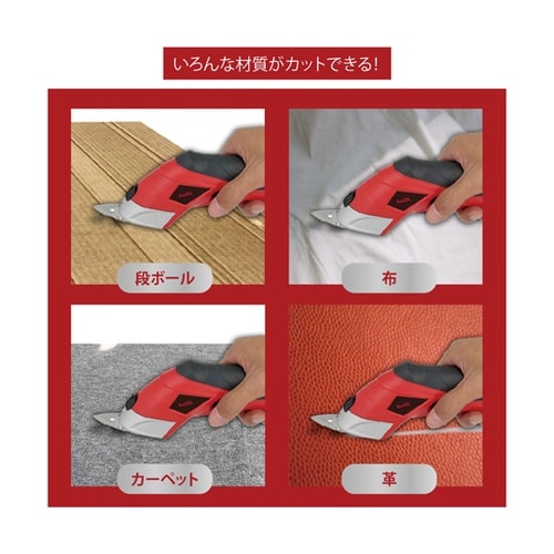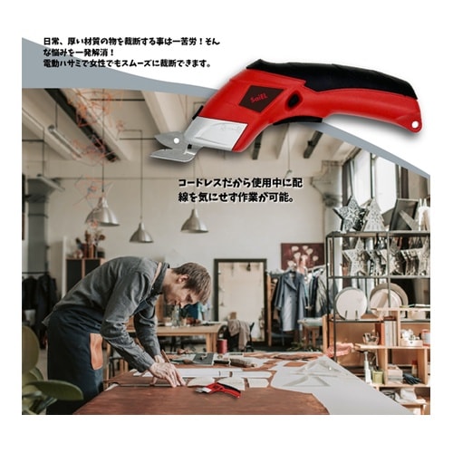 日常、厚い材質の物を裁断することは一苦労!そんな悩みを一発解消!電動ハサミで女性でもスムーズに裁断できます。便利なコードレスだから使用中に配線を気にせず作業が可能。いろんな材質がカットできます。 |