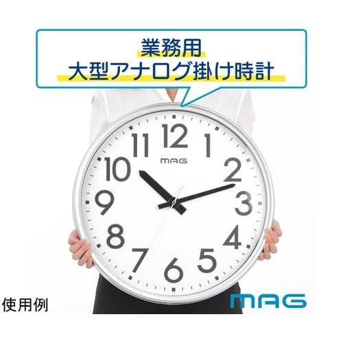 オフィスや工場公共施設で便利な業務用サイズの大型時計です。軽くて割れにくいアクリル樹脂製前面カバーを採用し安全面に配慮した設計です。滑らかに進む連続秒針と視認性の高い文字盤です。 |