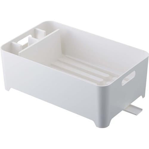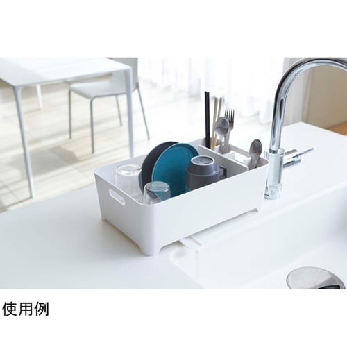 食器の水が直接シンクへ!レイアウトも自由自在!菜箸・カトラリー・調理道具などを分別できる仕切り付き。水が流れるスリットを利用してお皿が立てられます。 |