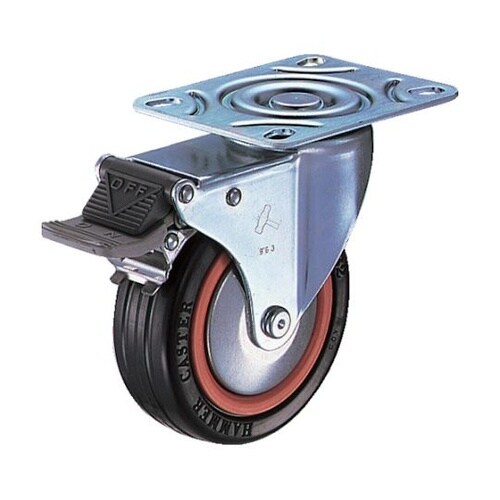 取付座が大きく重量感と堅牢さと安定感があります。工場や店舗、事業所など様々な場所に幅広く使用されます。医療機器・理化学機器の分野で広く使用されているキャスターです。 |