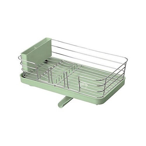 抜群の収納力がある水切りラックです。置きやすく取り出しやすいカトラリーポケットやコップホルダー付きです。水が流れるトレー付きの水切りです。