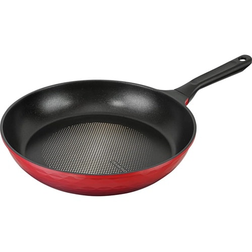 内面は人工ダイヤモンド粒子配合のふっ素樹脂コーティング。すべりの良さが使いやすい。留め具の凹凸がないので内面がスッキリします。汚れがたまりにくく洗いやすい。ガス火専用です。
