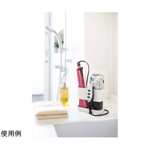ドライヤーとヘアーアイロンをすっきり同時収納!洗面台の扉・鏡などにも取り付け可能。 |
