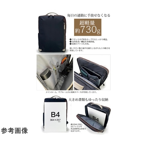シンプルな形状に絶妙なカラーリングの新感覚ビジネスバッグ。軽量、約730g。収納スペースが充実。肩にかけた状態ですぐにアクセスできる便利な前面スペース。 |