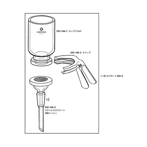 メンブレンフィルター47φに適合するステンレススクリーンタイプと焼結ガラスフィルター付のベース部です。TS19/28付きで適合吸引鐘はVKU−200及びVKU−500となります。 |