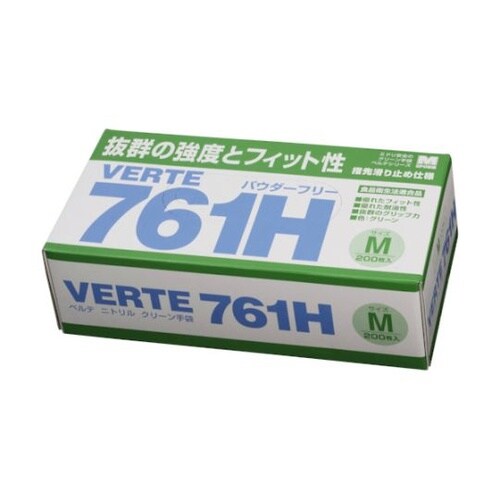 ニトリル製ディスポ手袋 ベルテ761H グリーン パウダーフリー(200枚) Mサイズ VERTE−761H−M