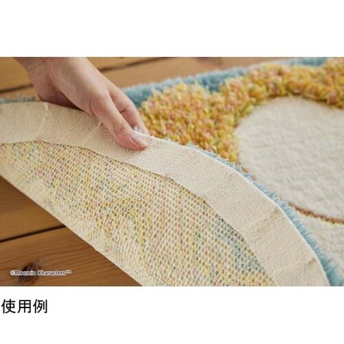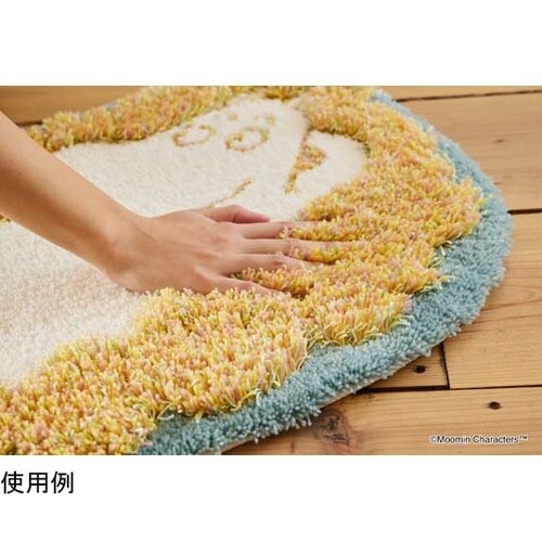 カラフルな糸使いで表現された、もくもく曇にのんびりと横たわるムーミンにほっこり。お部屋で一緒に寄り添ってくれるアイテムです。床暖房の上で使用する際は、定期的にカーペットを移動してください。 |