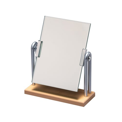 メイクに便利な卓上ミラー。幅広面取りをした豪華な5ミリ厚ミラーを使用したスタンドミラー。台座はインテリアにマッチするMDF木材を使用、支柱はシルバー塗装を施しスタイリッシュ。 |