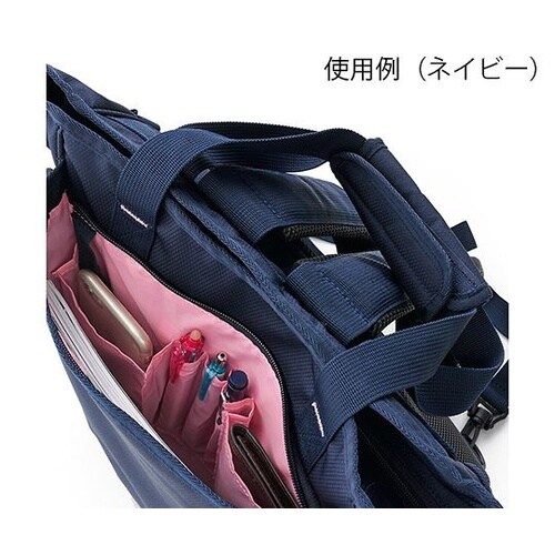 PC・タブレット端末など、機器類の収納に安心なクッション入りポケット、折り畳み傘やウインドブレーカーなどが入れやすく取り出しやすいポケットなど、用途別に収納可能な仕分けポケットが充実しています。 |
