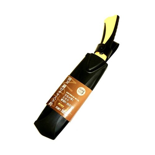プラスチック柄で割れ等が少ないです。収納、持ち運び向きのプラスチックケース付です。腰に下げて使用できます。ワンタッチ脱着が可能です。両刃で左右両方で使えます。薪割り、枝打ちなどの作業にも。 |