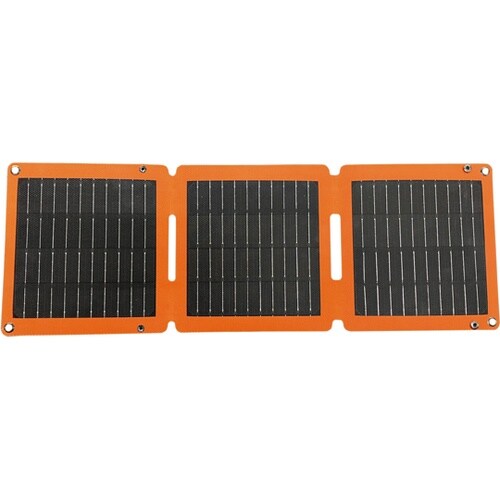 コンパクトな折りたたみソーラーパネルです。スマホやモバイルバッテリー、タブレットなどが充電できます。USB−Aポートは2つで、出力電流がわかるディスプレイを搭載しています。 |