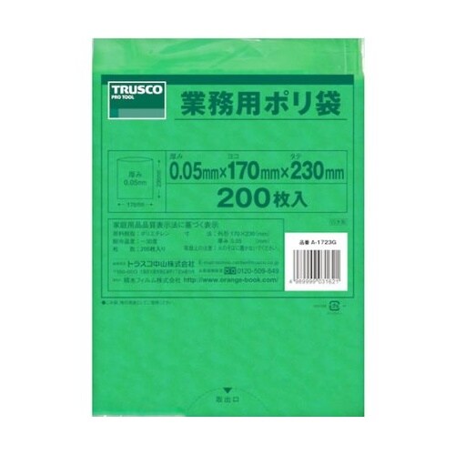 アズワン 小型ポリ袋 縦230X横170Xt0.05 緑 (200枚入) A−1723G A09A-2019