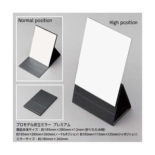 折立ミラーの持ち運びに便利なLLサイズです。折立ミラーは使用時は鏡面も大きく、たためばコンパクトになって持ち運びにも大変便利です。3段階の角度の調整ができるストッパーもついています。 |