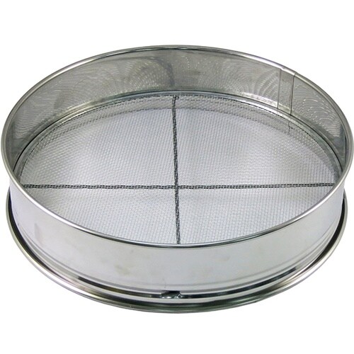 ガーデニング作業に便利なステンフルイ。土や小石の選別・ゴミ分けなどに使います。本体の枠はサビに強いステンレス製。アミはスチール(鉄)製。 |