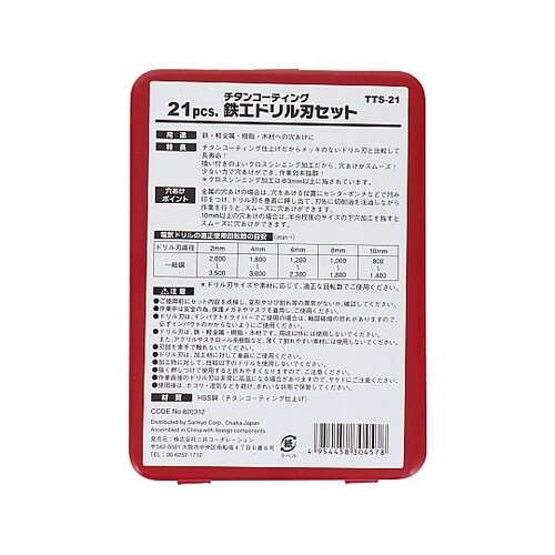 チタンコーティングだから長寿命!鉄・軽金属・樹脂・木材の穴あけに。喰いつきのよいクロスシンニング加工だから穴あけがスムーズ。 |