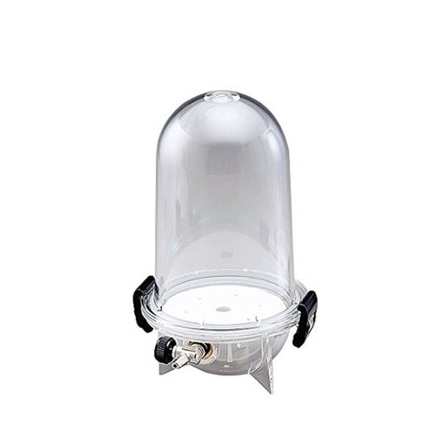 手軽に真空保存ができ、携帯に便利です。割れにくく軽量で丈夫な製品です。真空引きについては1Torrまで可能です。小型の為デシケーターと比べて容易に持ち運び可能です。 |