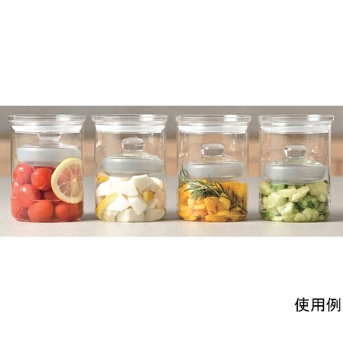 本体ガラスは耐熱ガラス製。におい移り、色移りしにくい素材なので、漬物作りにおすすめです。重石にはシリコーンゴムカバーがついた安全設計。スリムな形状で、冷蔵庫のドアポケットや棚に置いて保存ができます。 |
