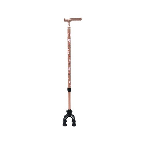 4点で路面をしっかり捉え安定します。支柱が前後に15度可動するので坂道でも接地しやすいです。細型ネックタイプで握りやすいです。手を放しても自立します。★180度回転するのでゴムが片減りしにくいです。 |