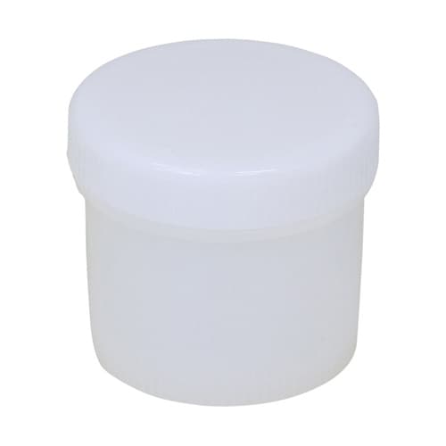 液漏れしにくい様フタにインナーリングがついています。水溶液や軟膏練り機に使用できます。本体の底は丸い形状のため最後まで内容物(軟膏薬)を取り出しやすい。