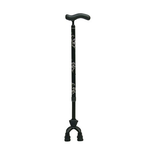 支柱が前後17度に可動するので坂道でも四点接地可能な4点杖です。軽くて丈夫なカーボン製です。握りやすい細型ネック、握り続けても疲れにくいグリップです。 |