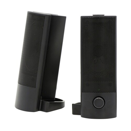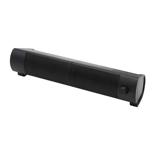 連結してサウンドバータイプ、分離して2.0chタイプ、2通りの設置ができるスピーカーです。ディスプレイの下に置いたり、ノートパソコンの左右に置いたりできます。 |