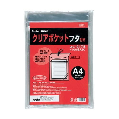 大切な資料書類も安心して収納できるフタ付クリアポケットアゾンクリアポケットフタ付きA4長3サイズのお得な100枚パック簡易包装パックで価格もお得、気軽にどんどん使えます。 |