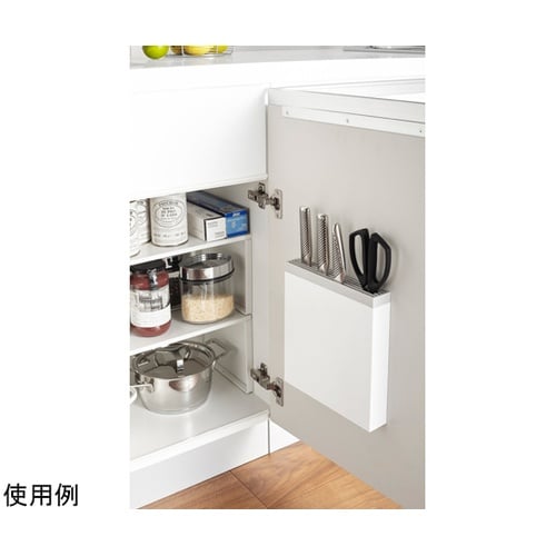 包丁やキッチンばさみをシンク扉に一括収納。場所をとらないスリムなデザイン!キッチンばさみも収納できます。カバーが取り外せるのでお手入れ簡単。高さがあるのでパン切り包丁が収納できます。 |