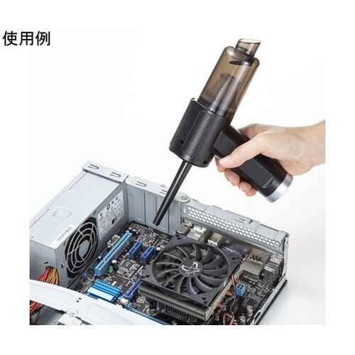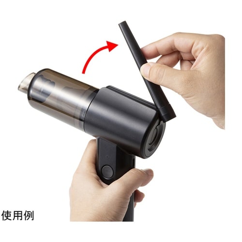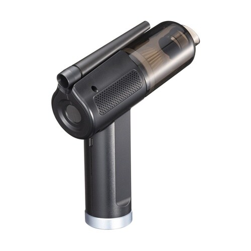 電動エアダスターとバキュームクリーナーの2つの機能を兼ね備えています。電動エアダスターのノズルは折り畳み式なので、バキュームクリーナーとして使用するときに邪魔になりません。 |
